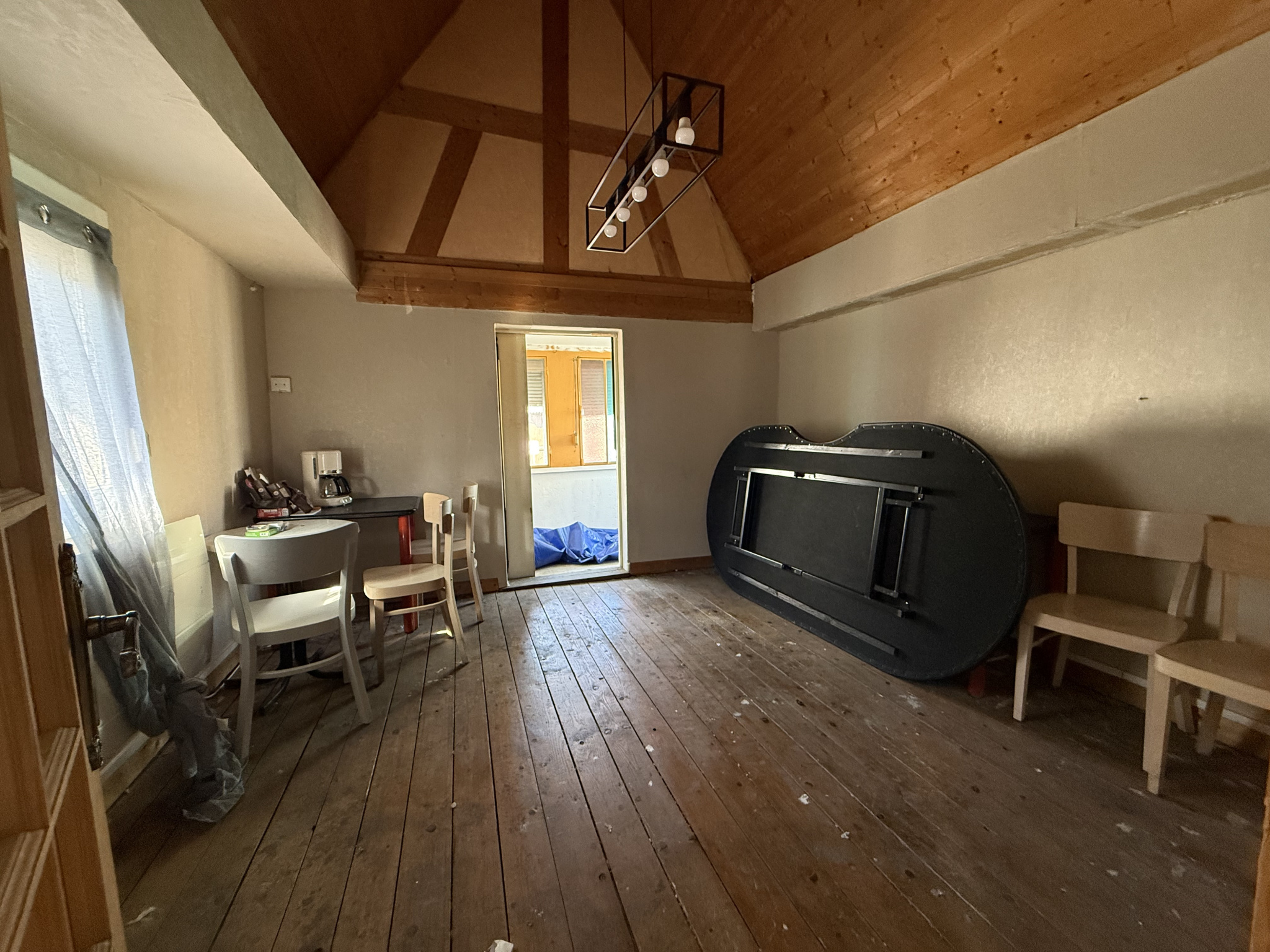 Accessible directement depuis le local, cet appartement est entièrement à réhabiliter et offre un fort potentiel de valorisation.