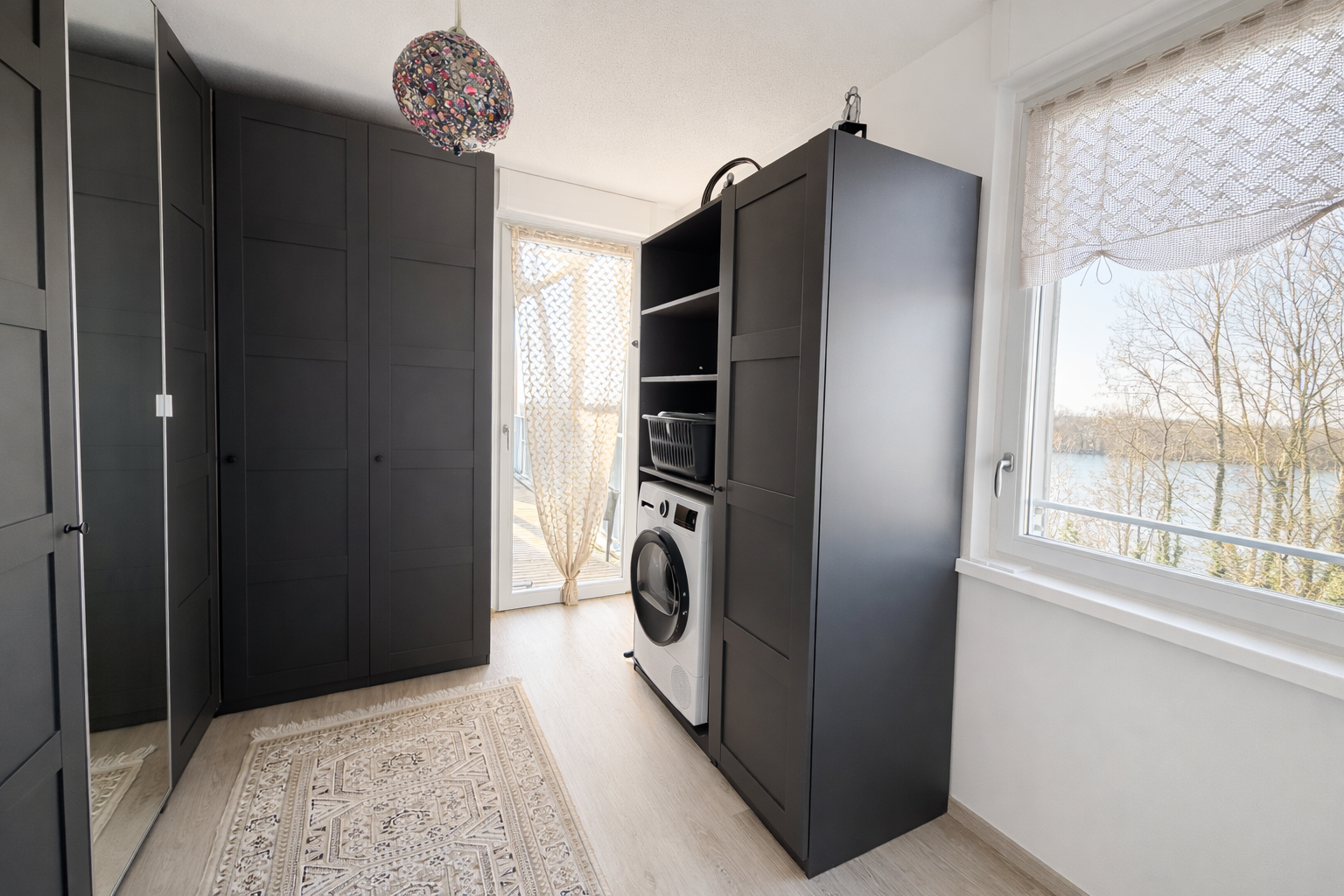 Dès l’entrée, vous découvrez un espace optimisé avec placard intégré.