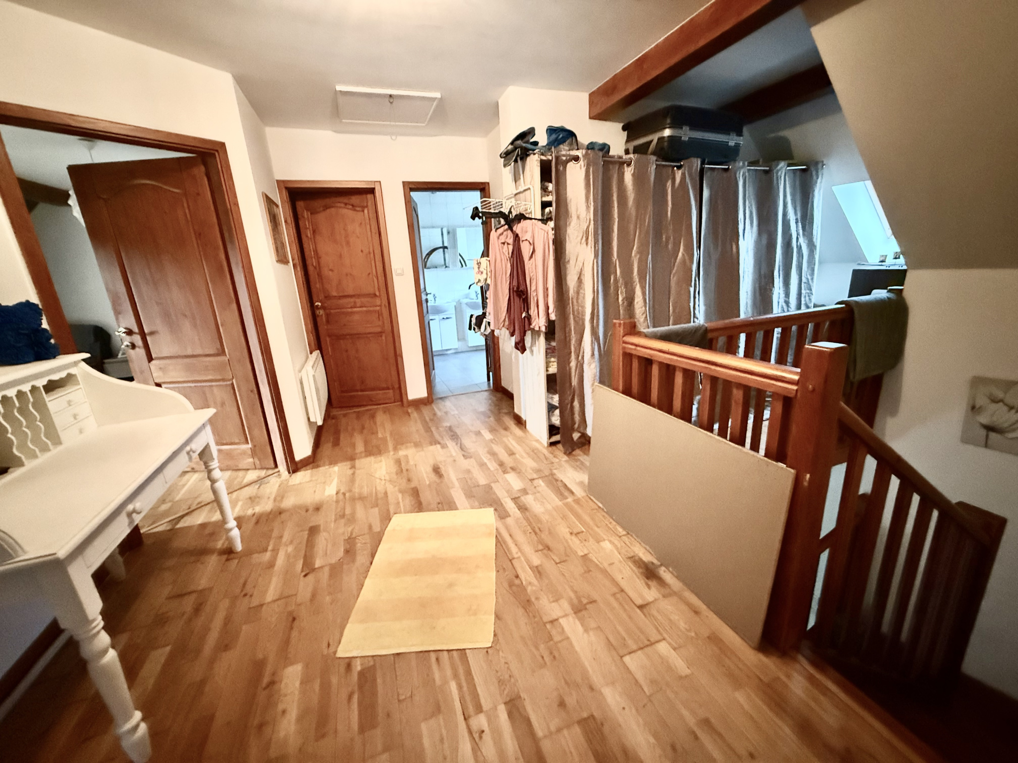 Étage : Trois chambres confortables et bien distribuées, une salle de bains fonctionnelle avec baignoire et douche, un WC indépendant.